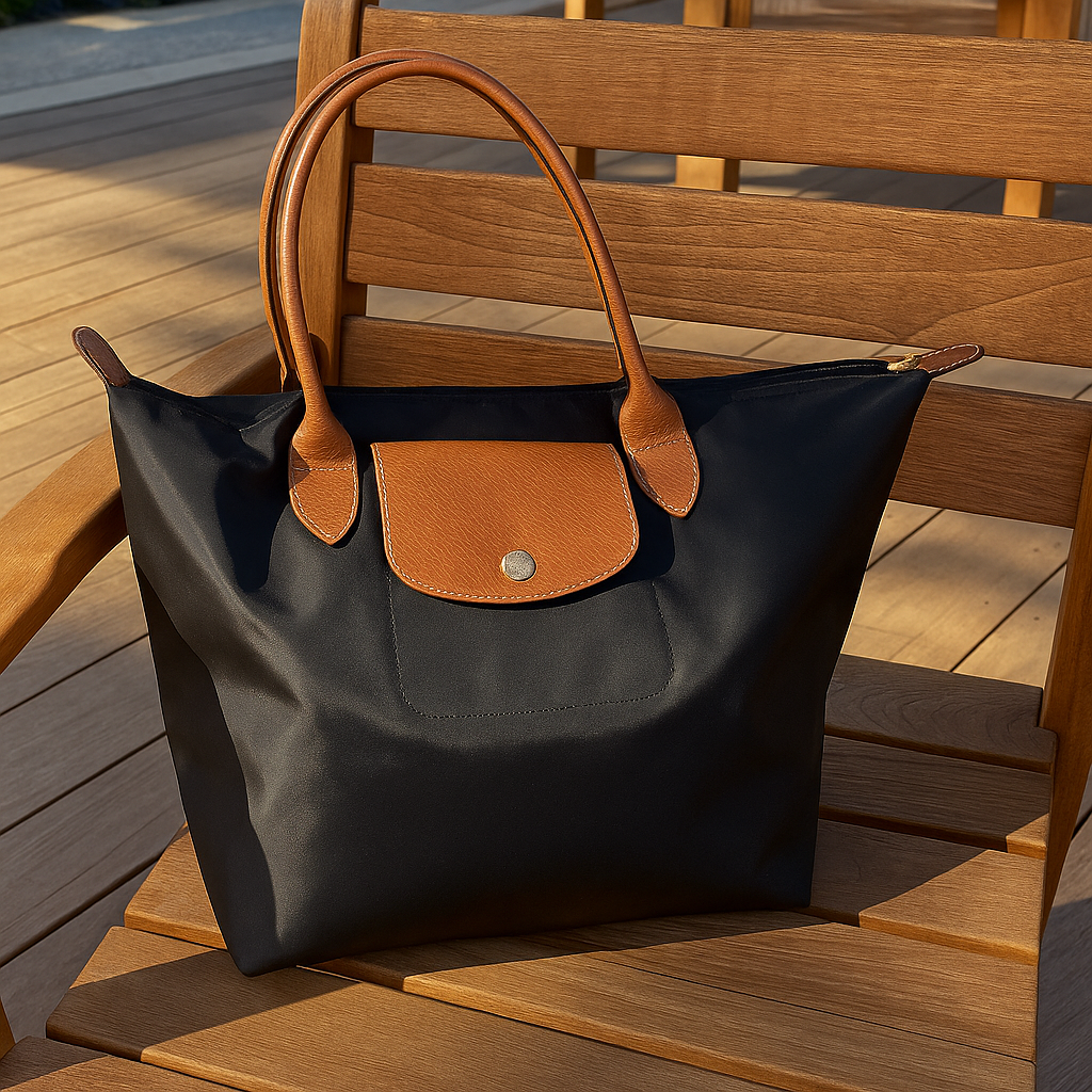 Crafted from durable nylon with elegant leather trim, this versatile bag is designed to be lightweight, foldable, and spacious enough to carry your essentials. With its signature flap closure and roomy interior, it is ideal for both everyday use and travel. The timeless design and wide range of colors make this bag a refined and practical accessory for any occasion. Whether for work, shopping, or a weekend getaway, this bag effortlessly complements your lifestyle.